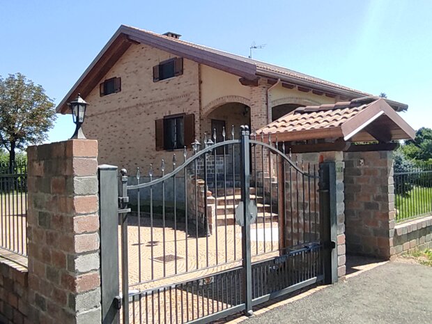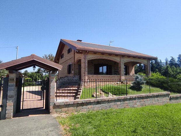 villa indipendente su quattro lati,SPLENDIDA,posta su un lotto di terreno di 1280 mq; La villa si eleva a tre piani fuori terra ed e' quindi formata dal piano abitativo composto da ingresso,soggiorno con camino,cucina abitabile due camere da letto ed un ampio bagno;dal soggiorno e dalla cucina si accede ad un magnifico portico coperto,mentre dalle camere da letto si accede ad un ampio balcone;dall'ingresso si diparte una scala in pietra che sale al piano primo,parzialmente mansardato,formato da soggiorno,cucina,due camere da letto e bagno;anche qui dalle camere si accede ad un balcone;la scala in pietra porta logicamente anche al piano seminterrato dove troviamo una grande tavernetta abitabile (h 240)con forno professionale e termocucina,un ampio bagno/lavanderia dove alloggia la pompa di calore,un vano adibito a palestra ed una cantina,oltre ad una autorimessa doppia con sezionale.Infine possiamo ammirare un giardino circostante la villa in parte piantumato ed in parte lasciato a prato curatissimo dove puo' alloggiare comodamente una piscina.L'immobile e' dotato di finiture di pregio in tutti i piani ,di riscaldamento a pavimento,pannelli fotovoltaici,pompa di calore 500 lt,porte interne in legno a scomparsa,serramenti esterni in legno con vetrocamera di ultima generazione,impianto di condizionamento con quadrisplit freddo/caldo,impianto per le telecamere,antifurto perimetrale ,e DOMOTICA oltre a materiali ricercati e di pregio nei pavimenti e nei rivestimenti.